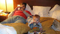 We went to Dallas over the weekend for a little break from work. Jadeyn's first vacation and she did great! It's been somewhat of a tradition since we got married to go to a professional baseball gam every year. Since we're a little low on cash this year, we opted for the Rangers. It was a blast! Rangers beat Tampa Bay 8-3! We also did some shopping at Ikea and the outlet mall in Allen. Jadeyn liked being dipped in the hot tub, although it wasn't hot at all. It was the perfect temperature for a little baby. Just like a bath : ) Jimmy and I got to go out Saturday night and eat some yummy sushi at a local hibachi grill. Jadeyn stayed at the hotel with my parents.